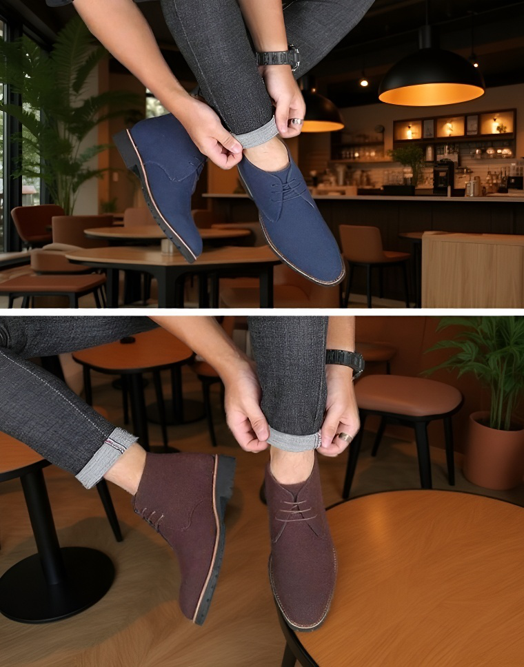 男性用皮靴低ヒールマーティンブーツサイドビュー